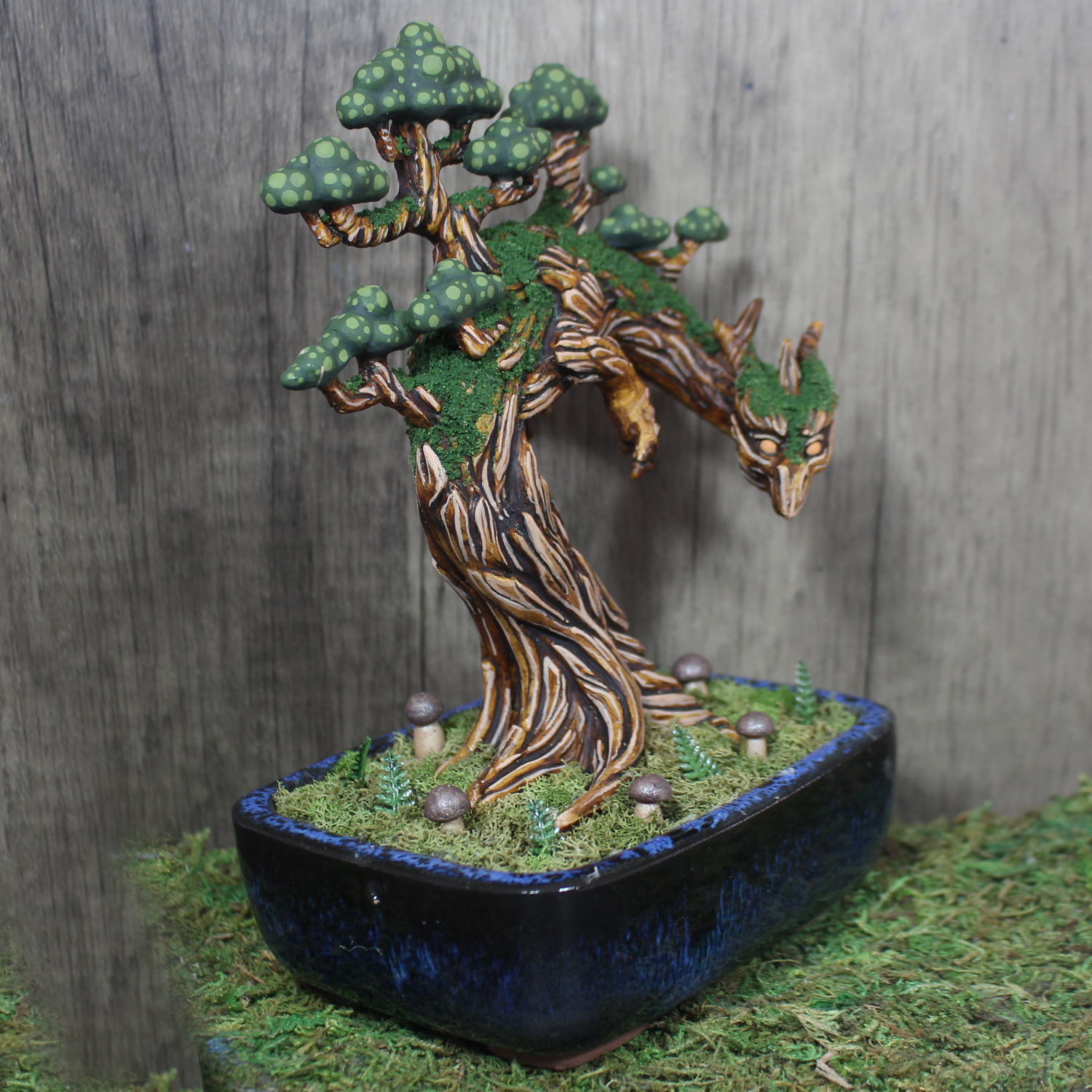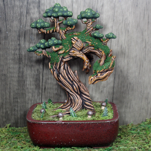 While these tree dragons may look like live plants, Arbori Bonsais don't require a single drop of water to stay vibrant year round. These whimsical forest spirits make beautiful center pieces and charming desk top companions. They love to watch over while you work and go about your day. This specially crafted figure brings the magic of the forest to your home while celebrating the year of the wood dragon.